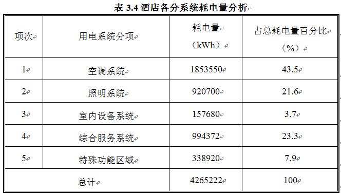 - 照明系统:照明设备用电量根据酒店管理方提供的灯具类型及数量,估算使用时间统计计算所得。