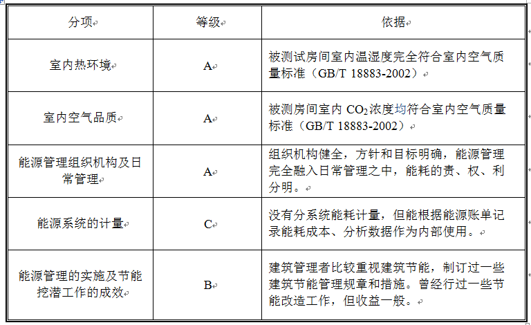 根据《公共建筑能源审计标准》评价标准,该酒店的各项等级评价结果见表6.3。